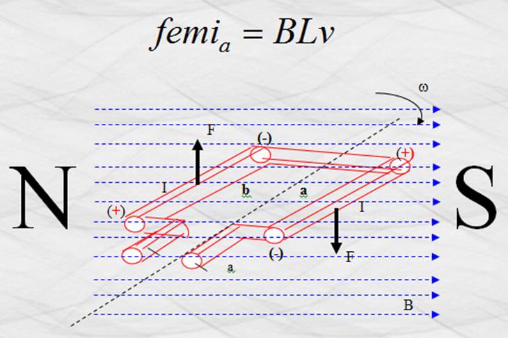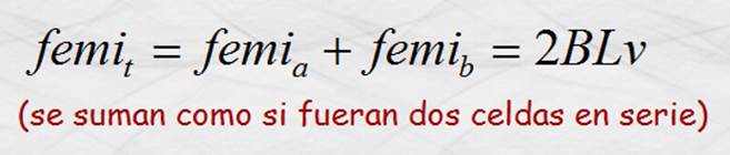 “a” forma un ángulo q = 90º con las líneas de inducción, por lo que sen 90º = 1 , de modo que la intensidad de la femi en el mismo es :