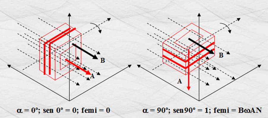 cuando a= 0 , la femi es nula; y que cuando a= 90º , la femi es máxima,