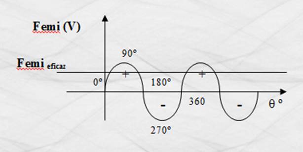 conduce a que la femi en cualquiera de las terminales sea continua y de forma senoidal, con alternancias positivas y negativas, como se