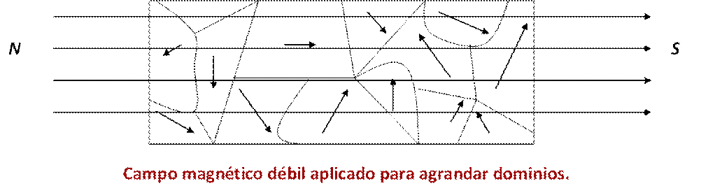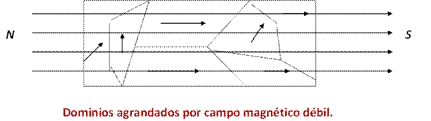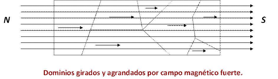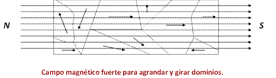 dominios y agrandamiento de éstos en dirección del campo magnetizador si la