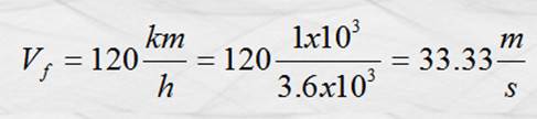 no está en unidades del S. I., lo primero que haremos es la conversión siguiente: