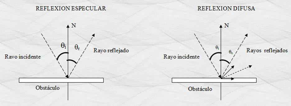lado, la reflexión es difusa si el rayo al incidir en un obstáculo se parte