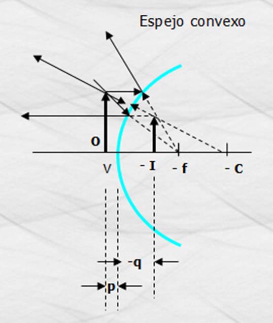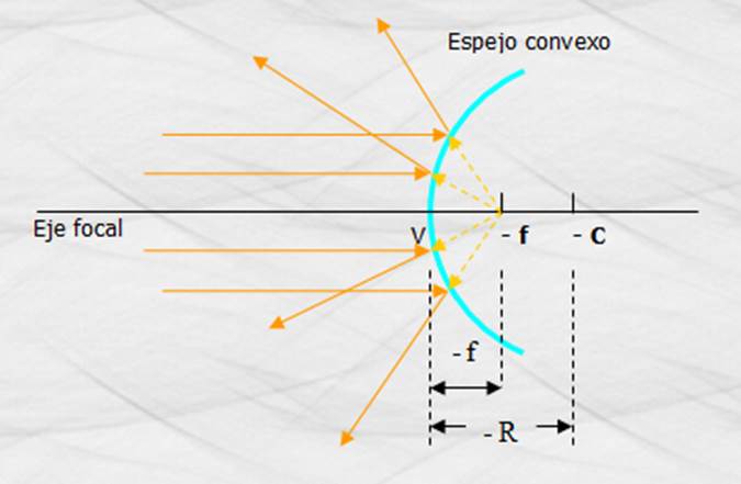 reflejados en éste, que inciden paralelos al eje. En el espejo convexo, es un