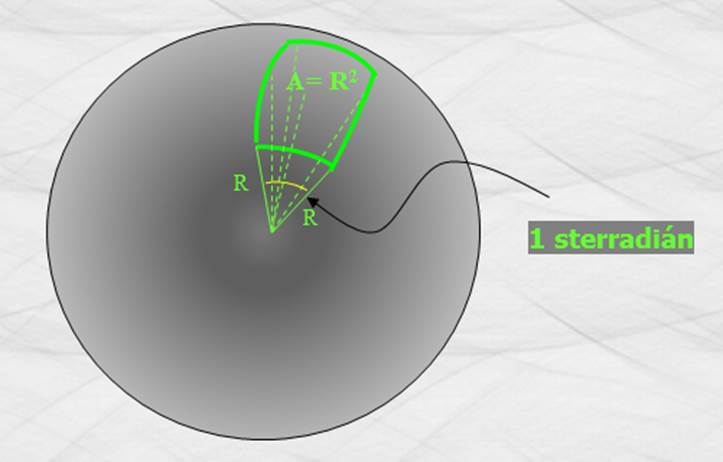 en tres dimensiones, en la definición se cita un ángulo sólido de un sterradián.