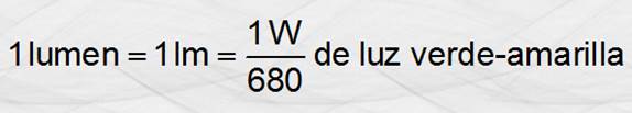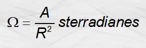 Donde F es el flujo en lumen; W el ángulo sólido en sterradianes e I la intensidad