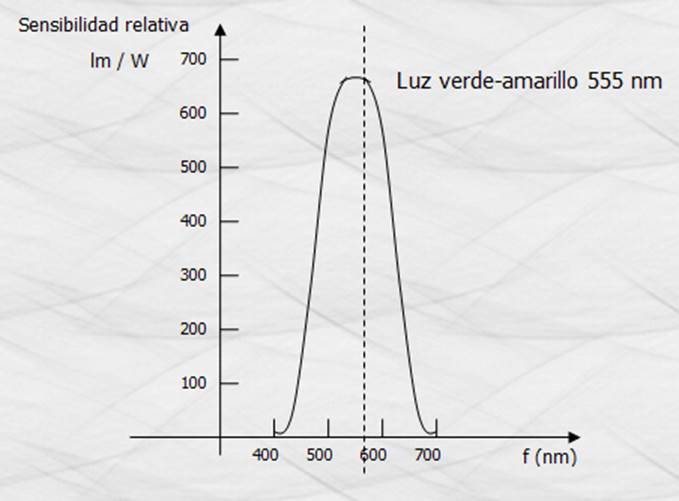 luminoso de una fuente luminosa, habrá que consultarse la gráfica anterior de la respuesta del ojo a la