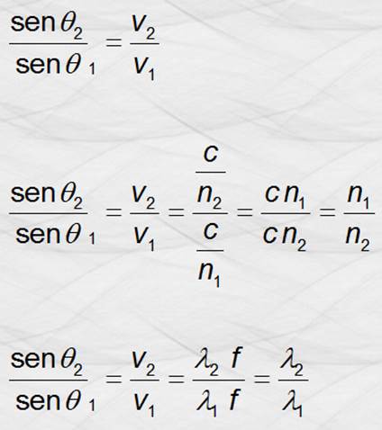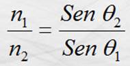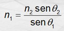 En la que q1 es el ángulo de incidencia; q2, el ángulo de refracción, medidos respecto