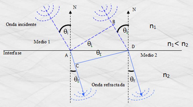en la interfase de dos medios y continua propagándose en el segundo medio, su