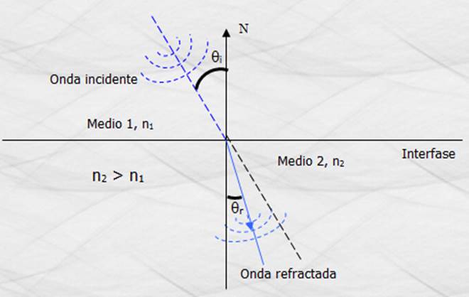 Figura 125. Refracción de la luz en un medio con mayor índice de refracción.