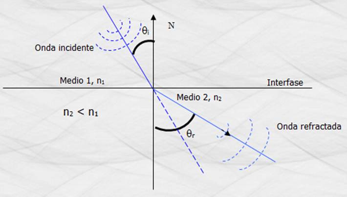 de un medio a otro de densidad menor se refracta, en este fenómeno hay un