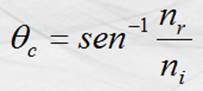 ángulo crítico se puede calcular de una ecuación derivada de la ley de Snell y