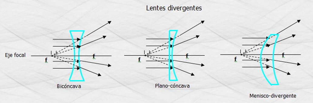 lente. Las lentes divergentes son: bicóncavas, plano-cóncavas y