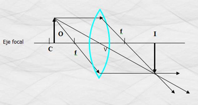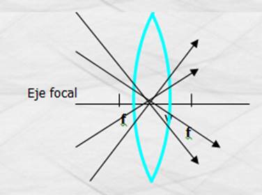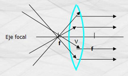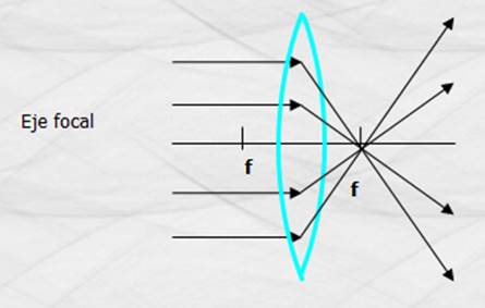 paralelo al eje focal que incide en la lente, se refracta de tal forma que