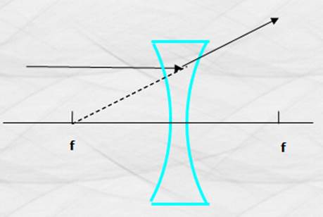 Figura 135. Refracción de rayos que tienden a pasar por el foco en una lente divergente.