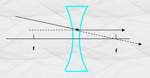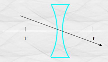 Figura 136. Refracción de rayos que atraviezan el centro de una lente divergente.