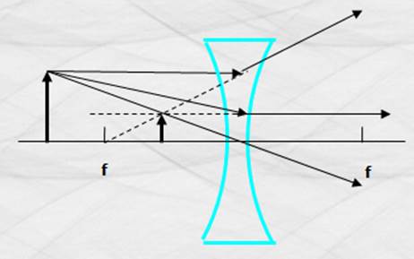 Figura 134. Refracción de rayos paralelos en una lente divergente.