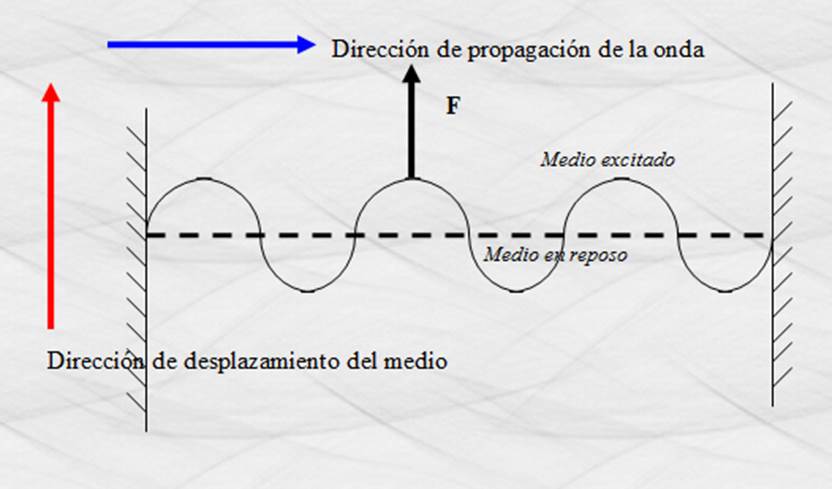 transversalmente a la dirección del desplazamiento del medio, el movimiento se