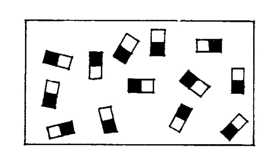 Al finalizar el siglo pasado Weber y Ewing expusieron una teoría molecular, la cual se aparta muy poco de la teoría posterior de los dominios. Weber y Ewing desconocían la existencia del “Spin” electrónico y de los dominios, por lo que consideraron que las propias moléculas constituían unos imanes elementales. Así, cuando un material magnético no esta imantado los imanes moleculares están dispuestos al azar (es desorden) ver la siguiente figura: